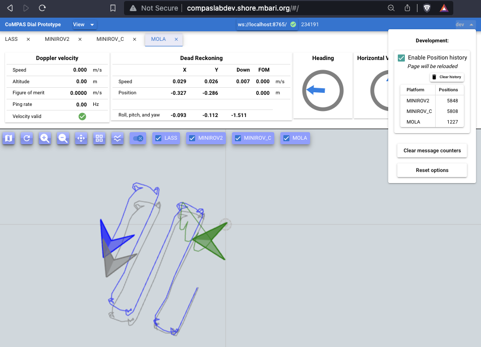 Using IndexedDB, Dial keeps a recent history of latest positions and heading per platform in the browser. This allows to restore the trails on the map upon a reload of the application.