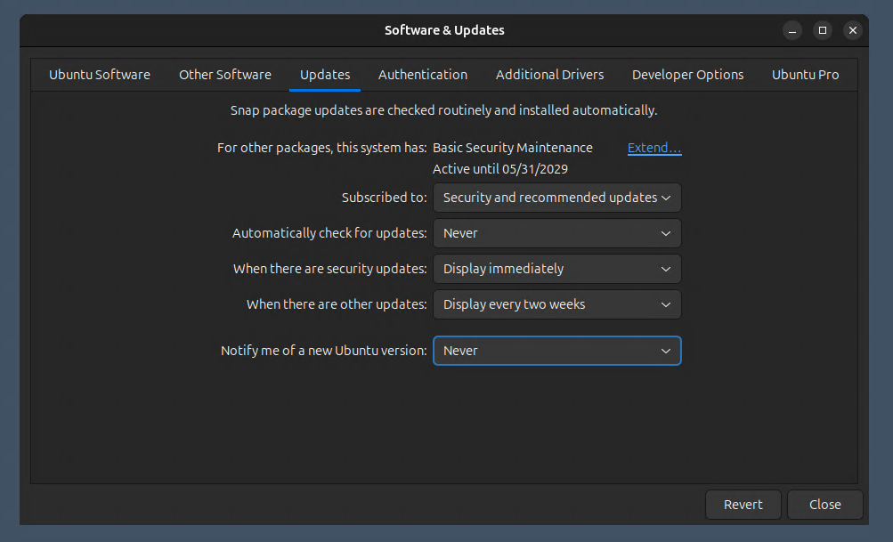 - Set the update policy in the "Software and Updates" app Updates Tab to more restrictive manual settings. This will reduce network traffic and stop automatic updates from interrupting LASS deployments.