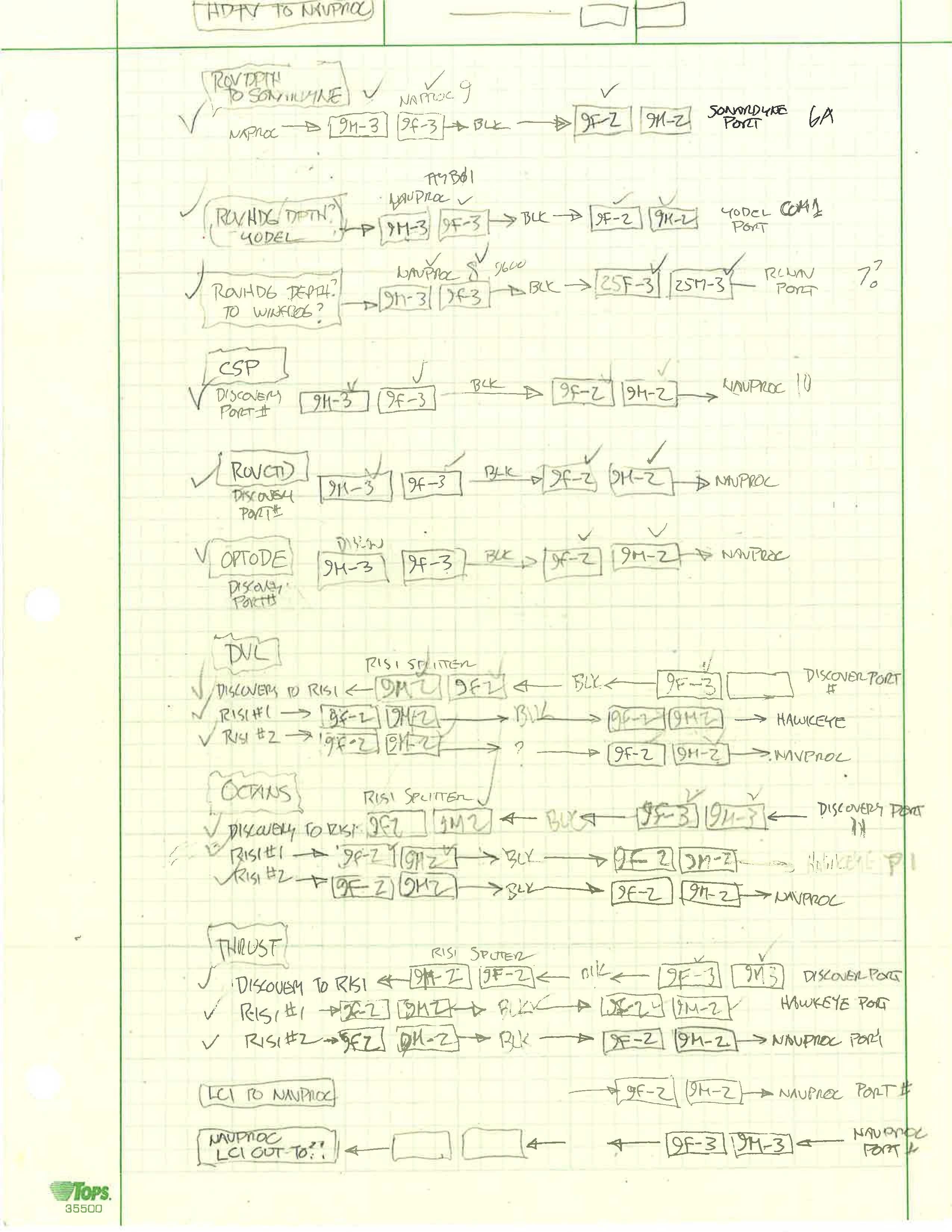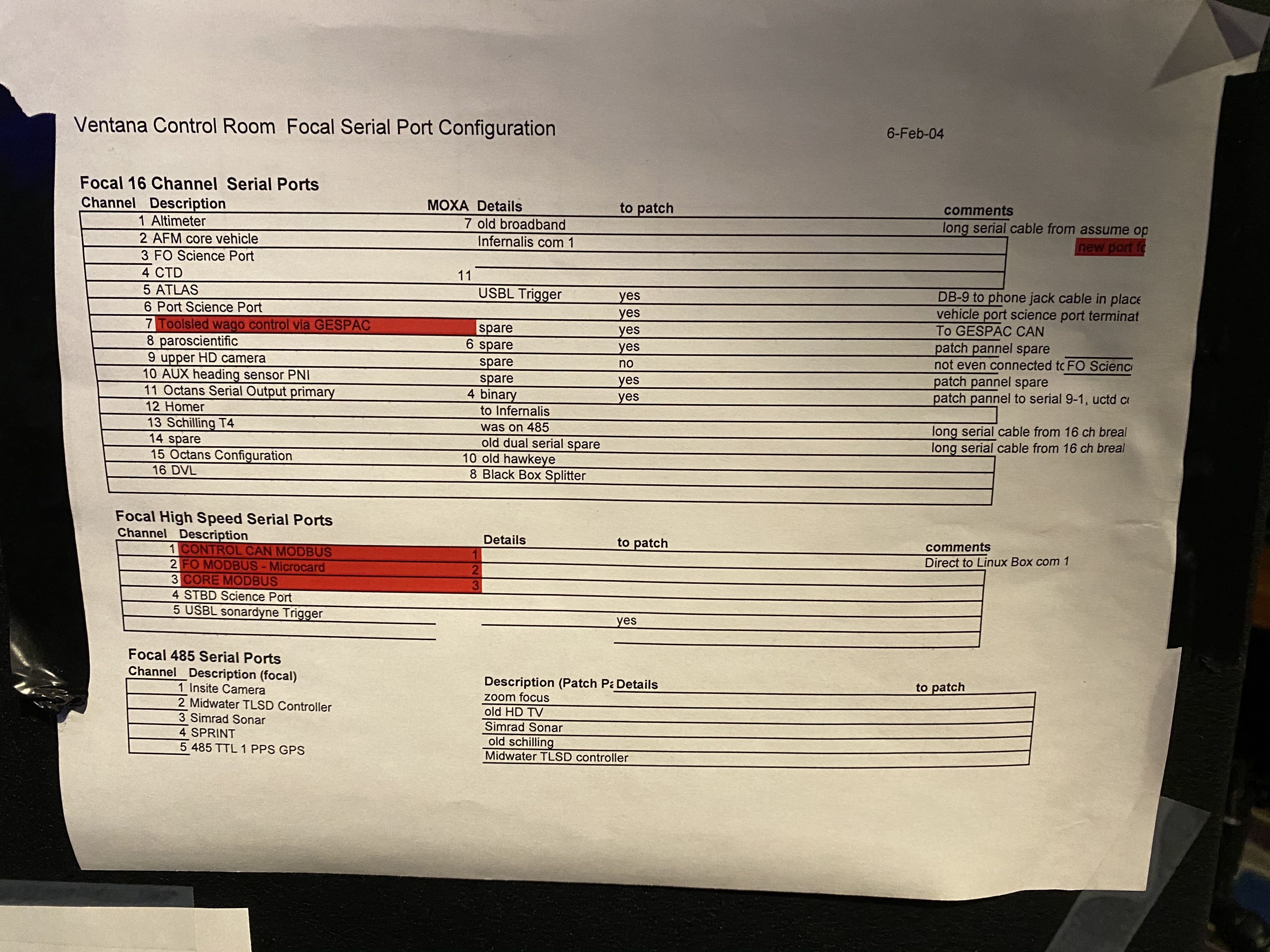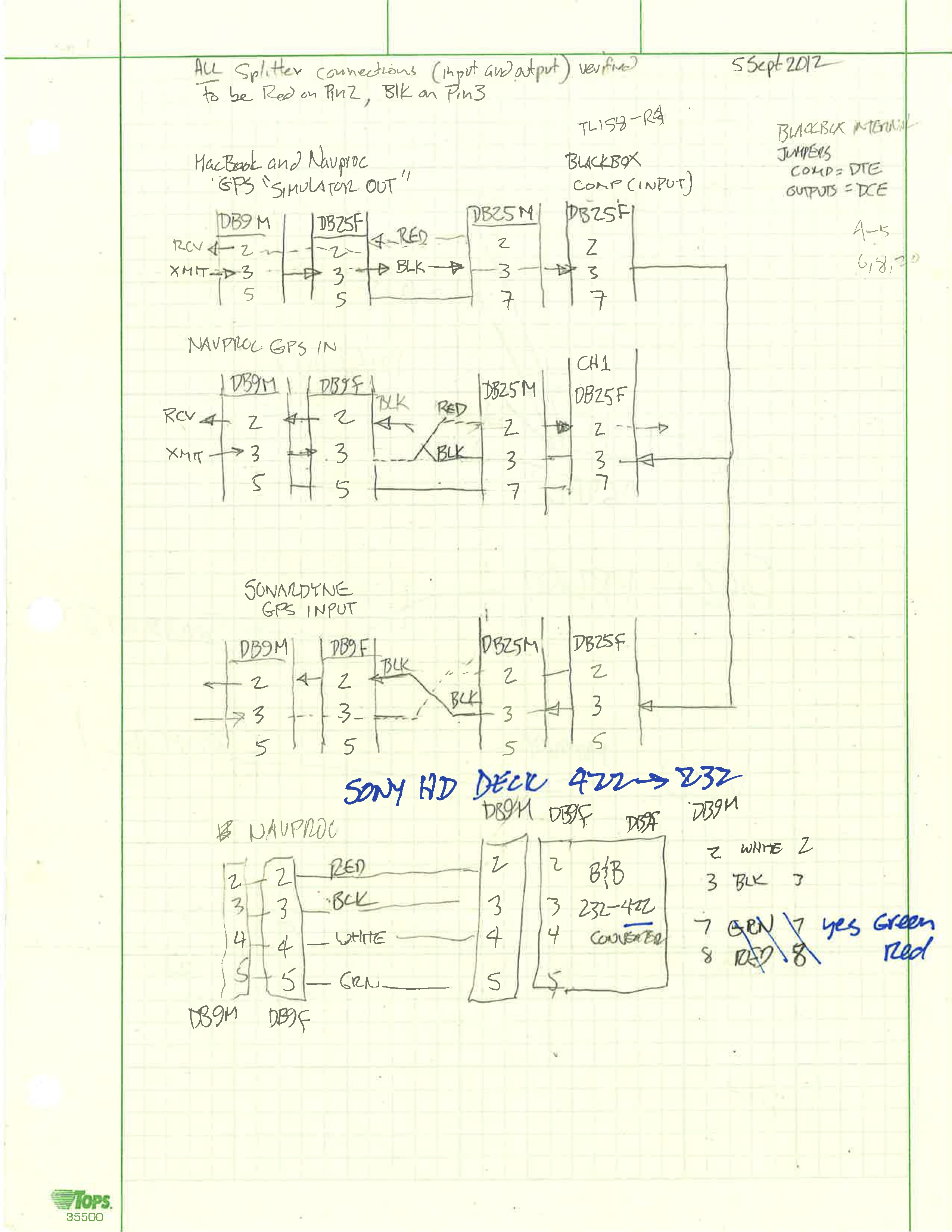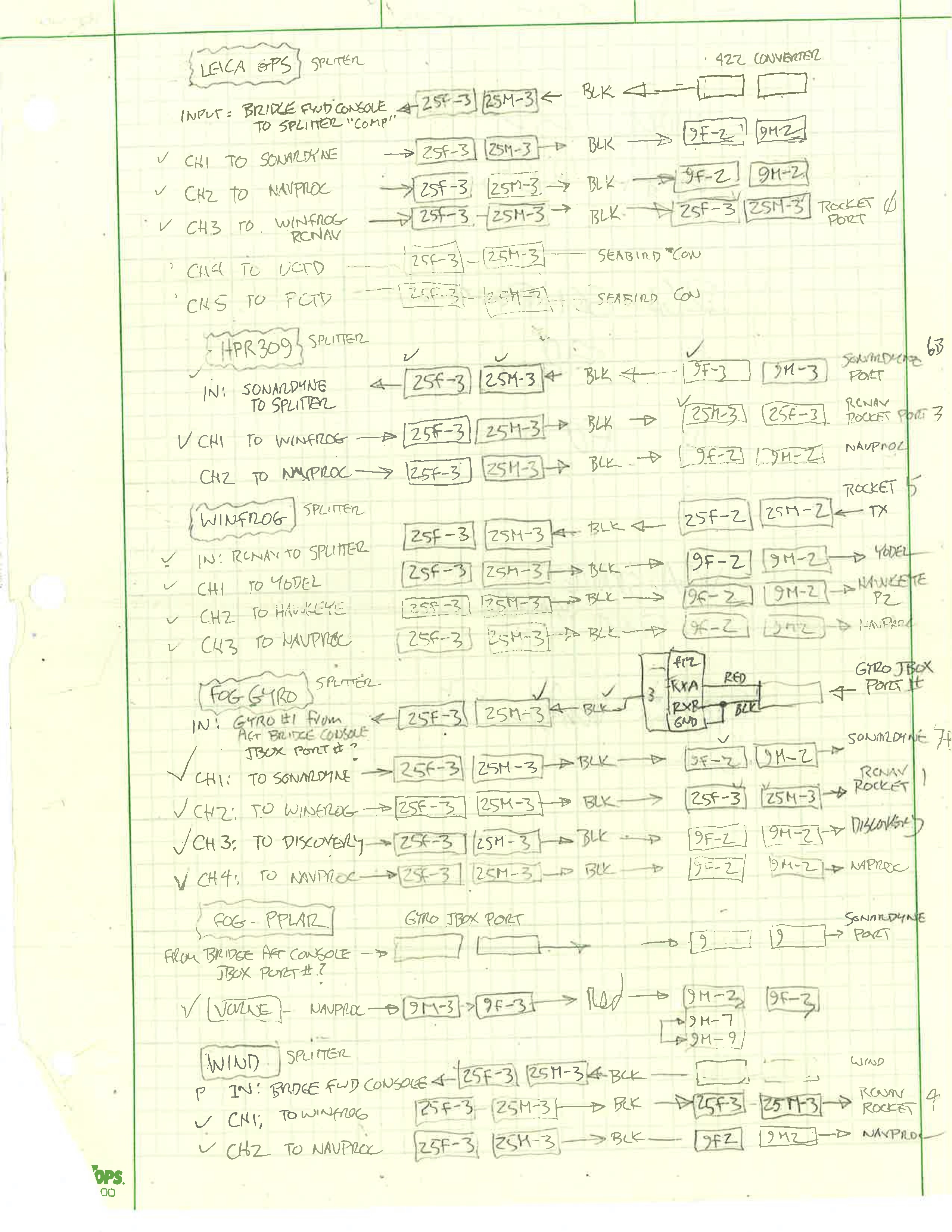 Below are images of the paper copies of the wiring guides that Rich Schramm put together while installing the system on the Rachel Carson (click on them for larger versions).