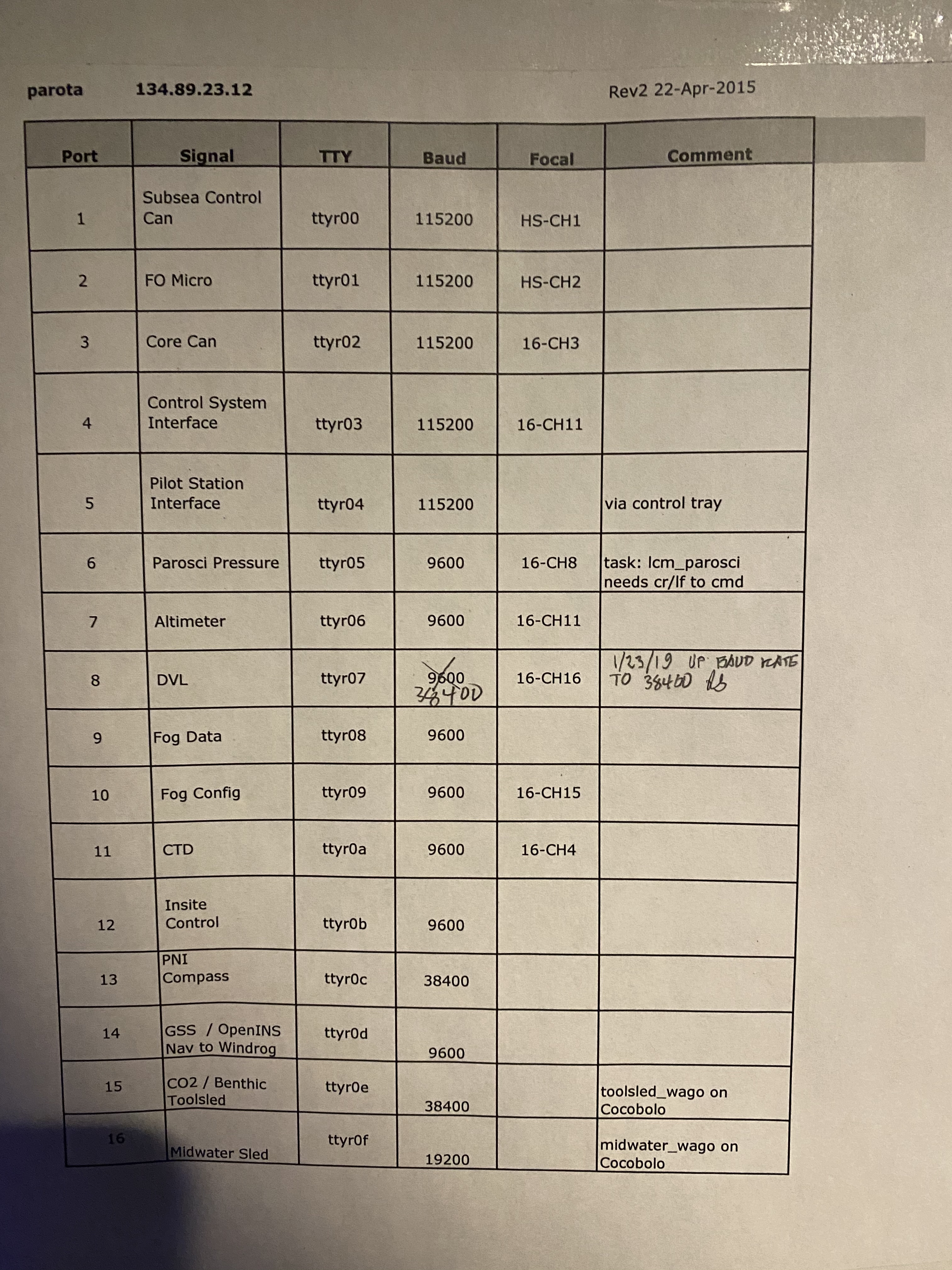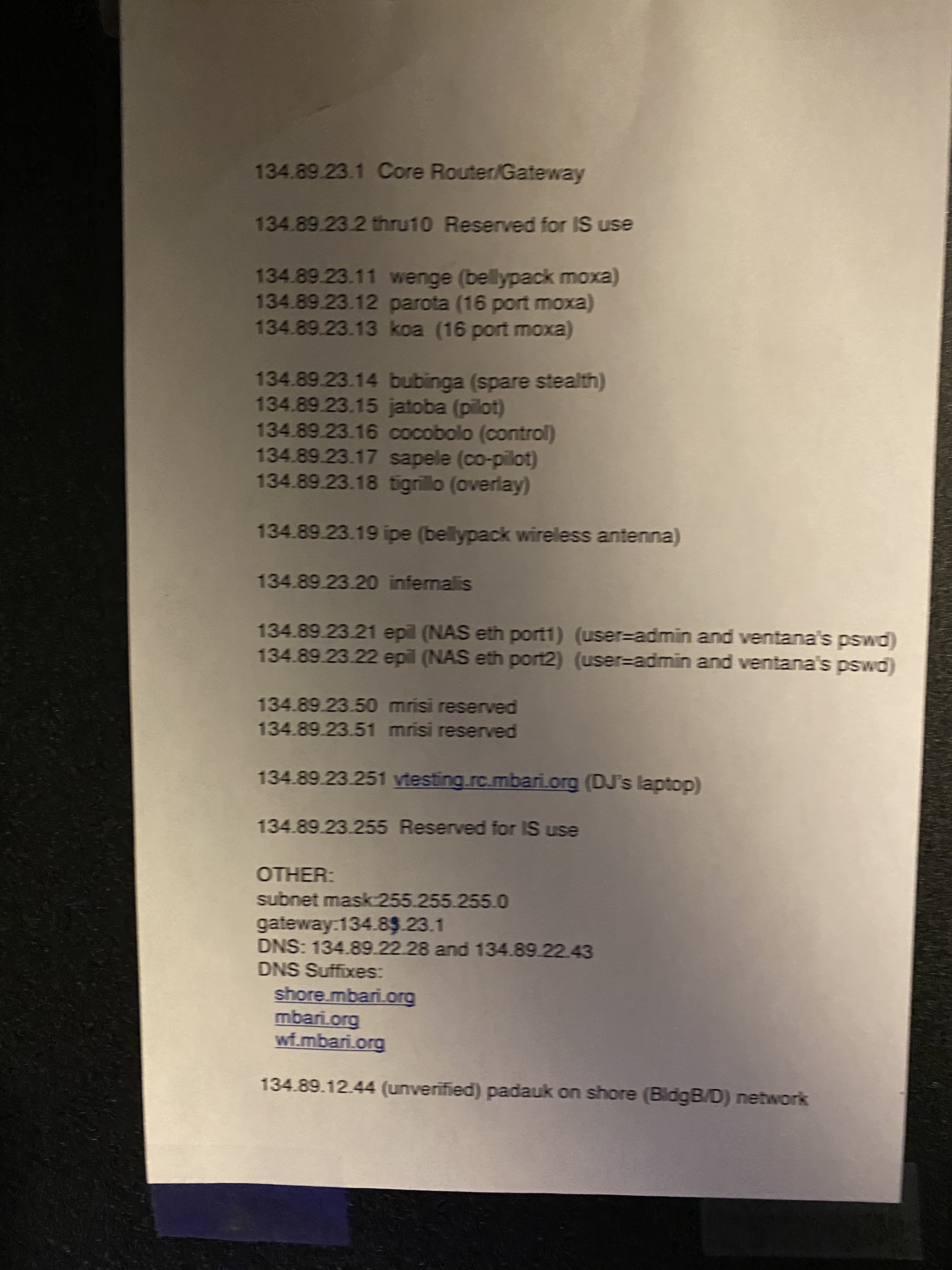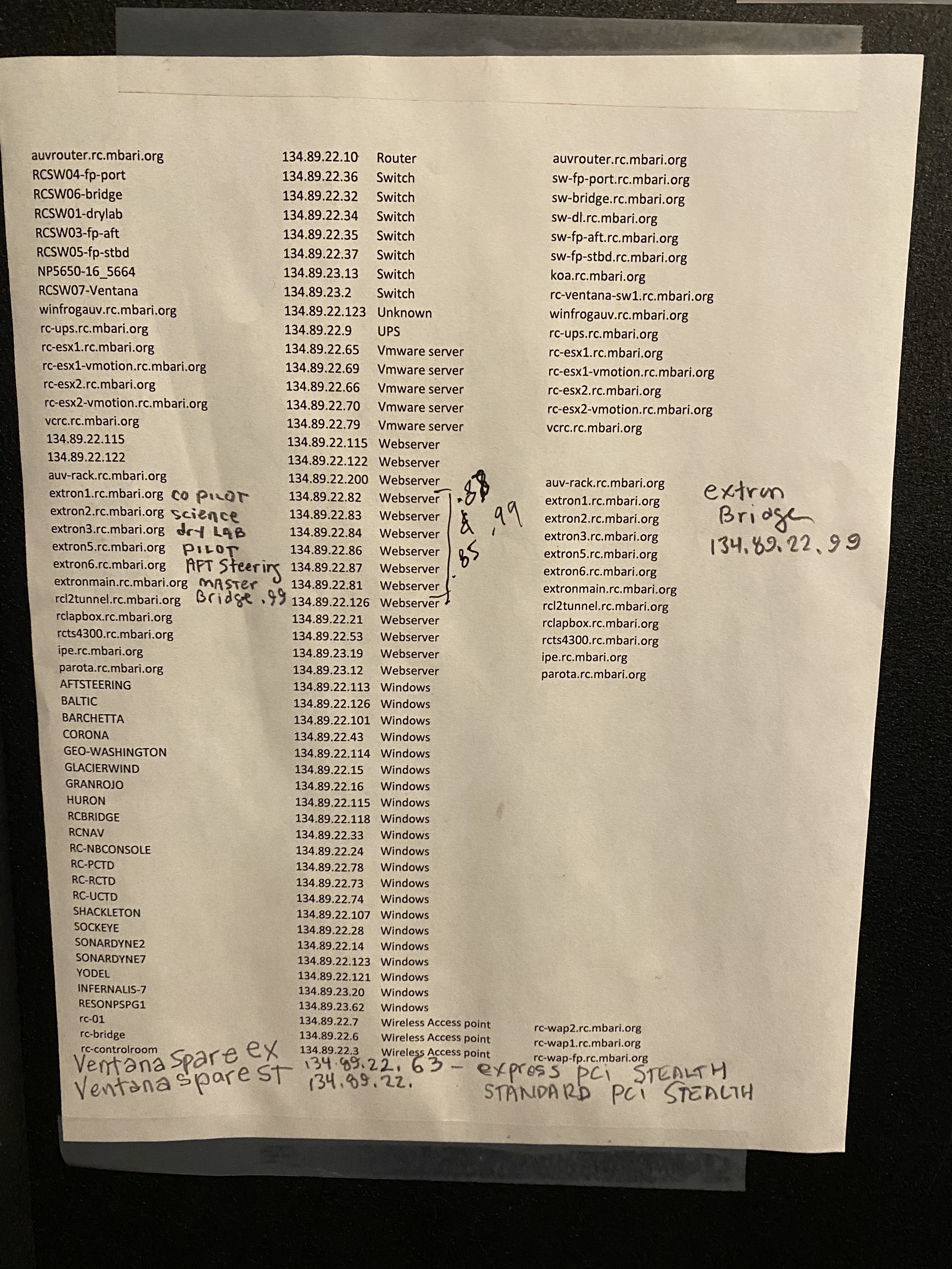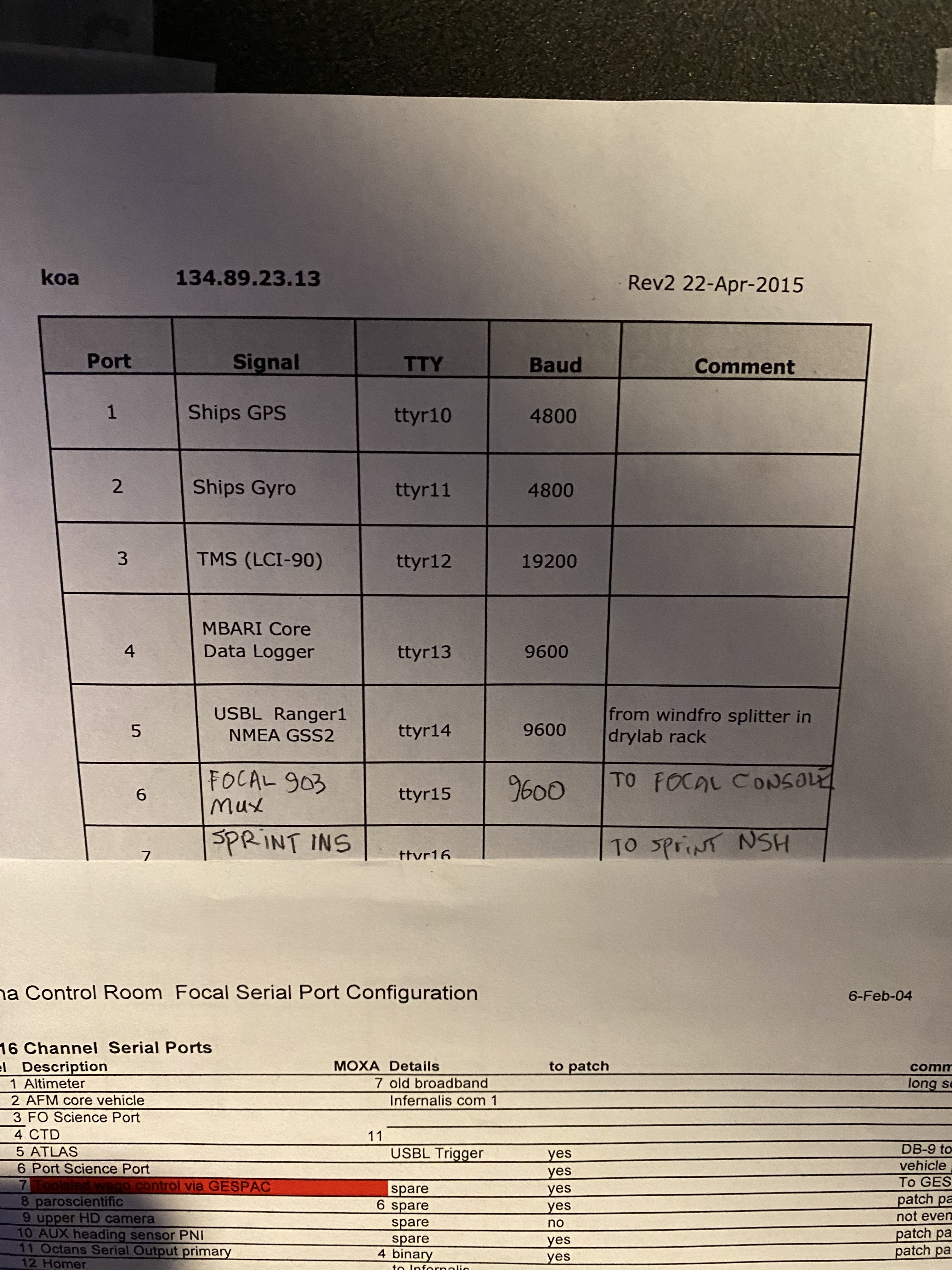 Below are images of the paper copies of the wiring guides that Rich Schramm put together while installing the system on the Rachel Carson (click on them for larger versions).