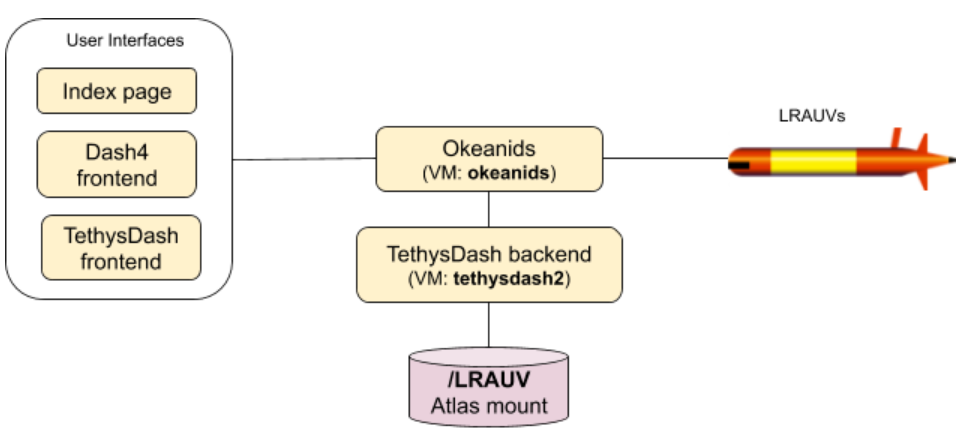 LRAUV vehicles are (by default) configured to interact with the TethysDash backend via okeanids: