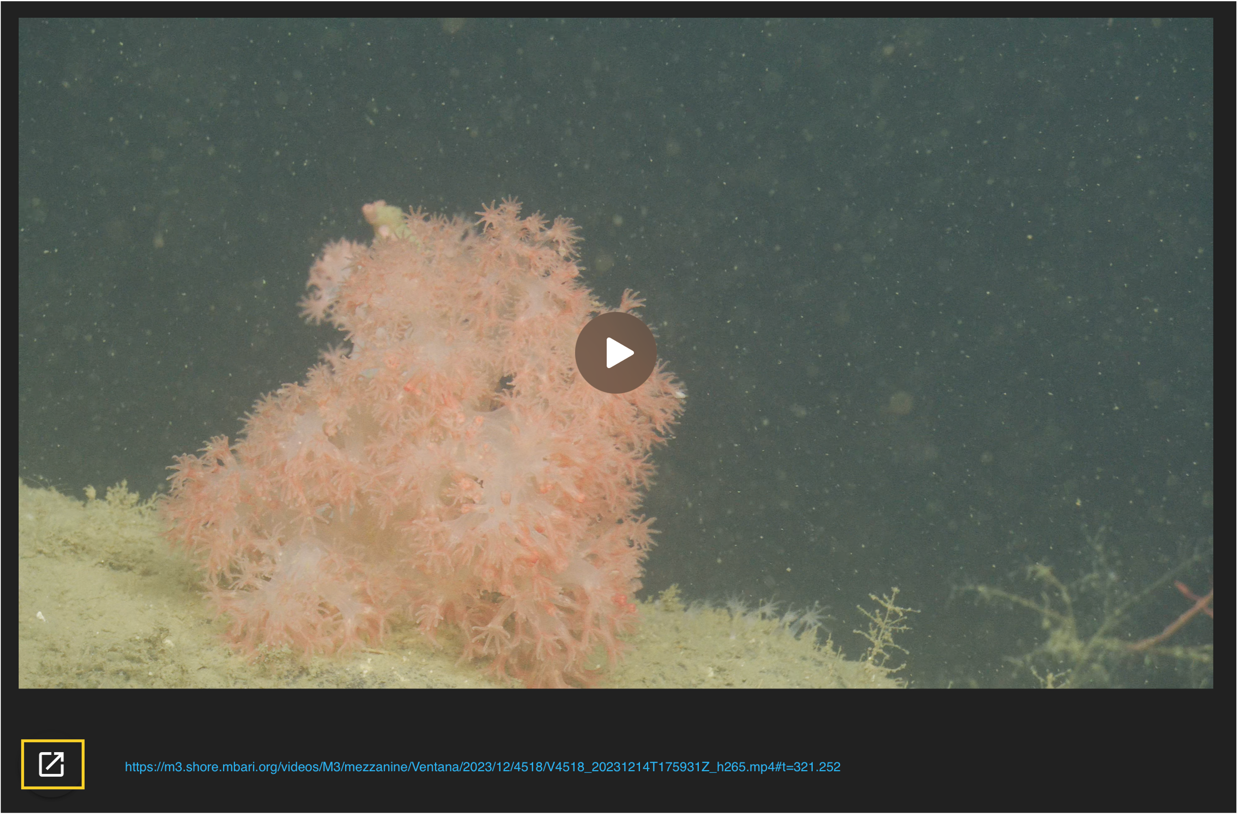 When an annotation is selected, the corresponding video will appear in the video player on the right, queued to the time of the annotation. The video can be toggled to an external player using the arrow icon in the lower left ( ).